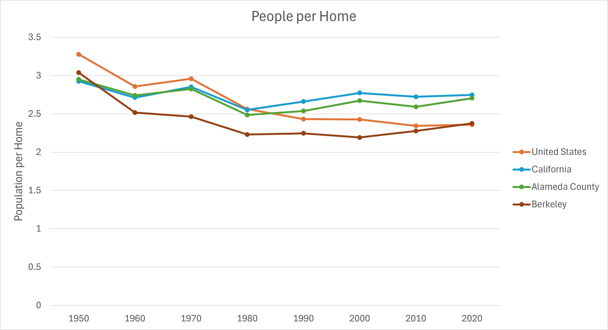 People per home, 1950-2020